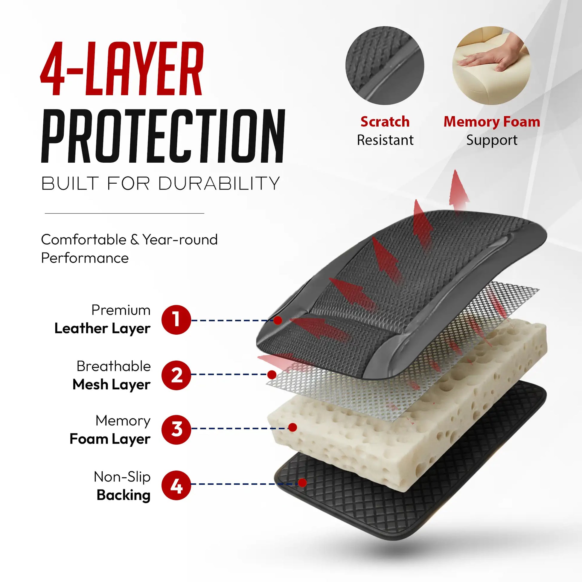 Upgrade your comfort and keep your seats protected with these memory foam car seat covers. Made from durable leatherette with a breathable mesh centre, they deliver all-day comfort and a clean, factory-finish look.