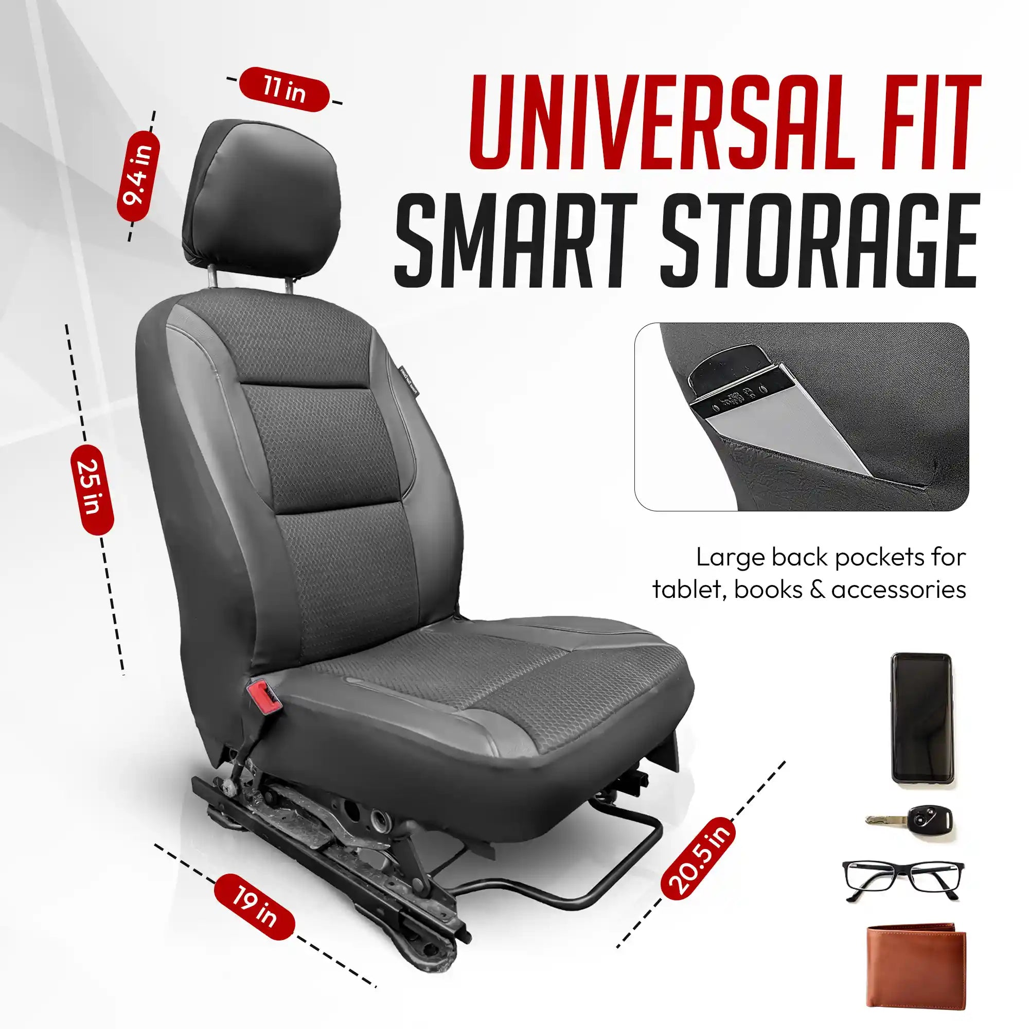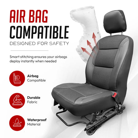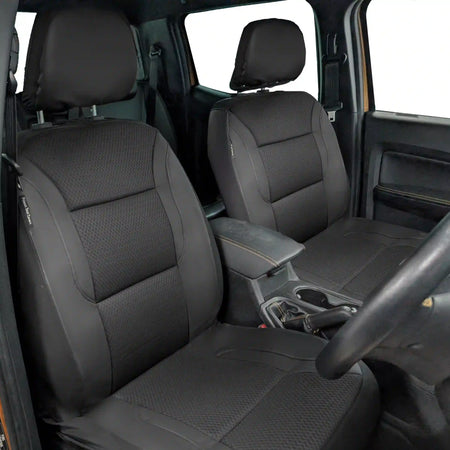 The low-tensile stitching makes them airbag compatible, while stretch side panels ensure a snug, universal fit — from small cars like the Fiat 500 and Mini Cooper to bigger models like the Ford Ranger and Kia Sportage.