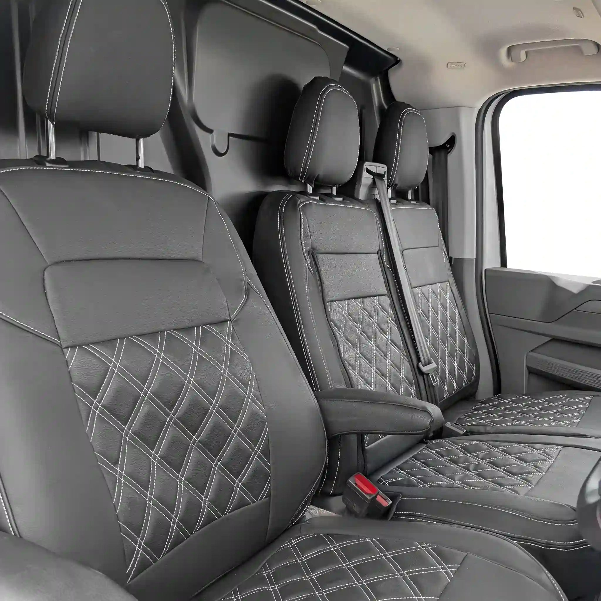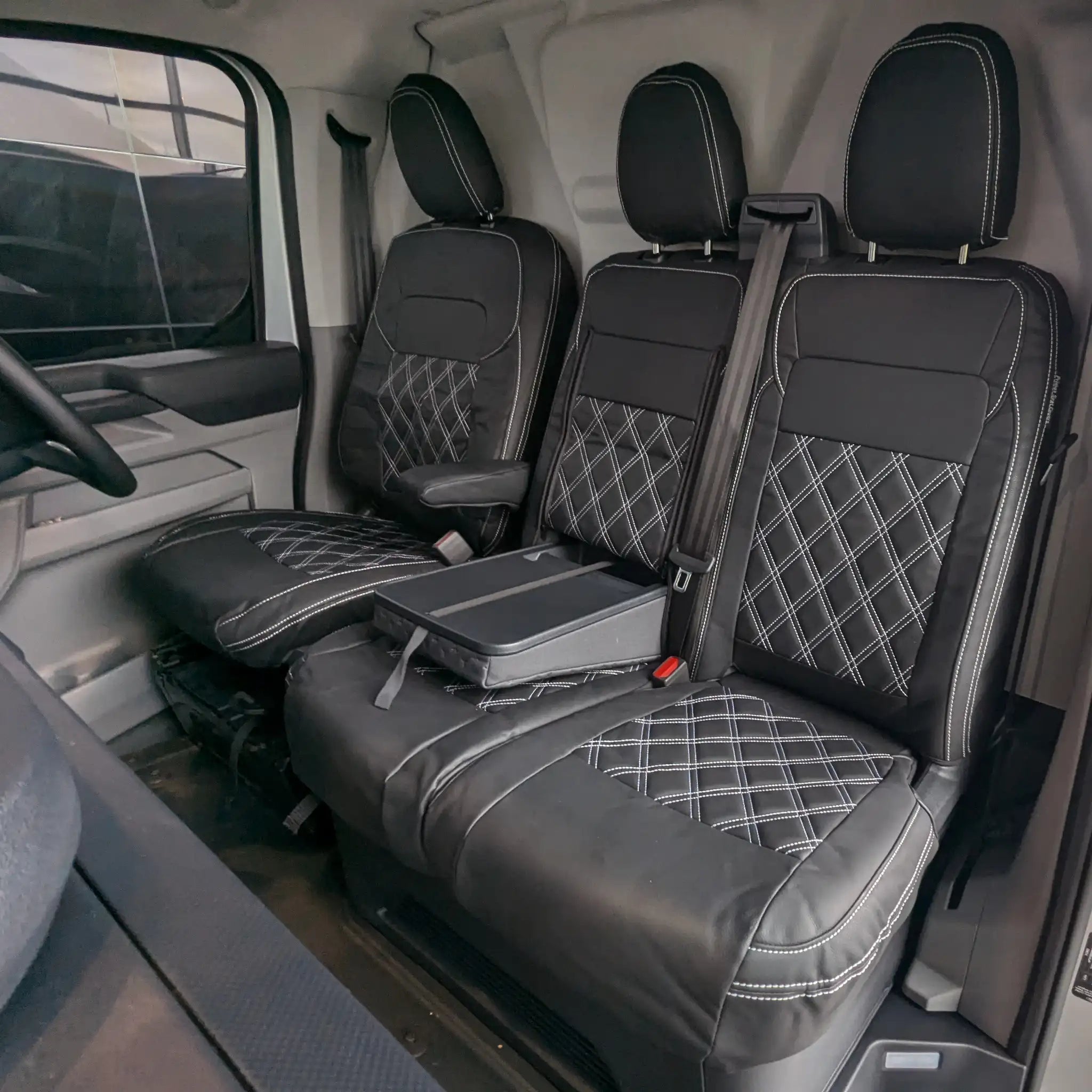If you want your van to look professional and stay protected, these leatherette seat covers for the Ford Transit Custom (2023 onwards) tick every box. Designed specifically for models with or without the handy fold-down tray on the double passenger seat, these covers feature zip access so you won’t lose any storage or functionality.