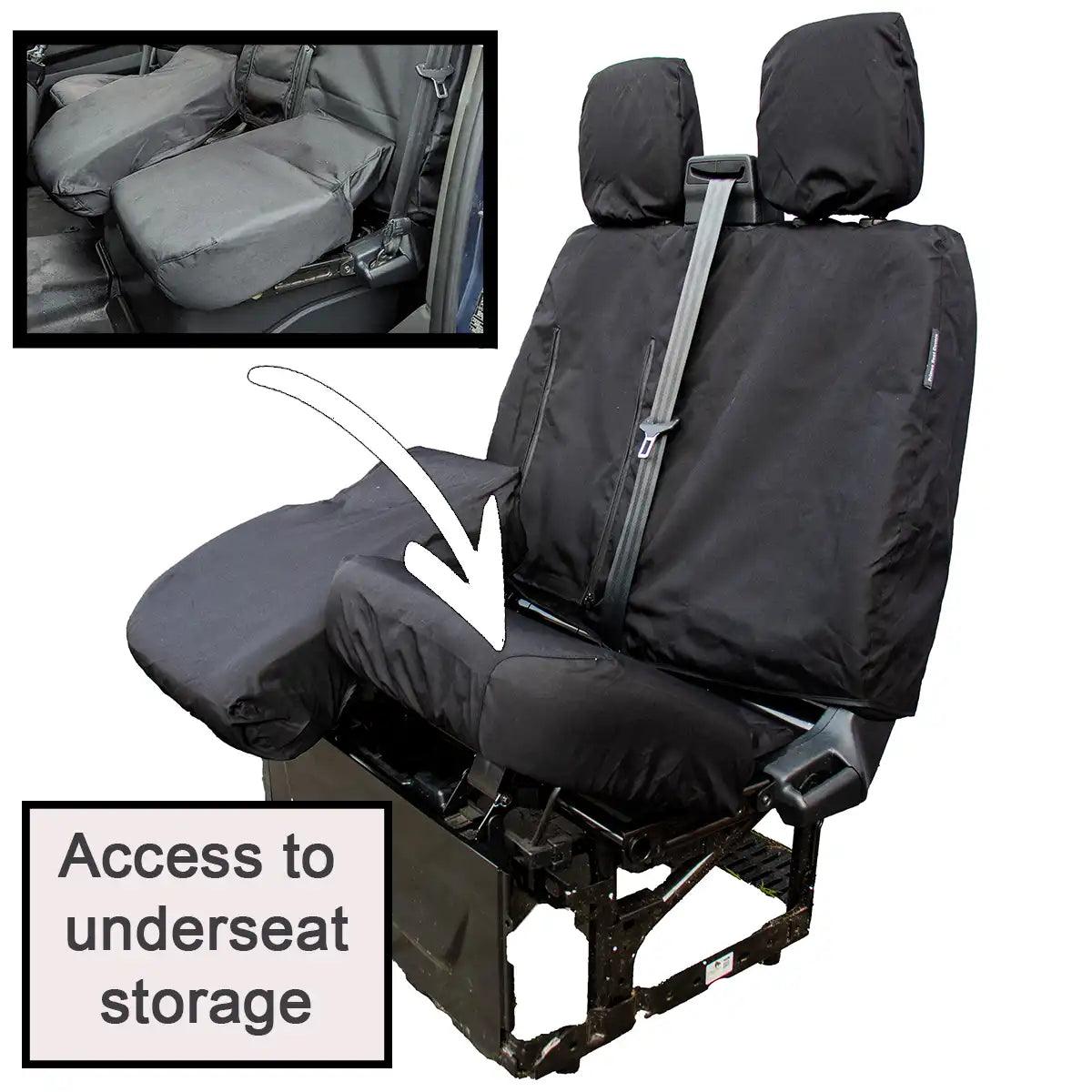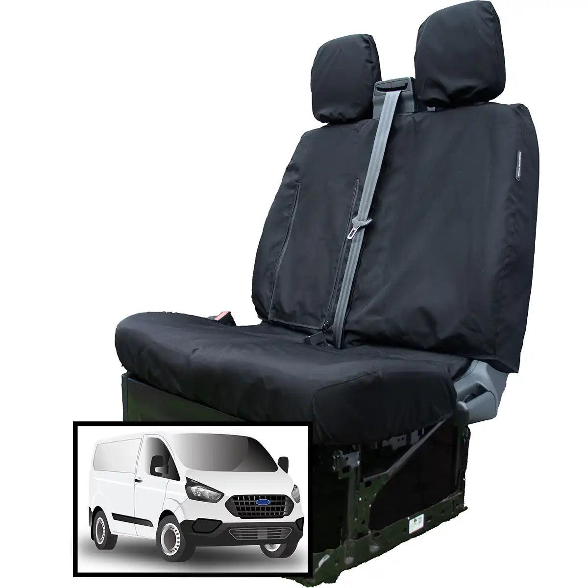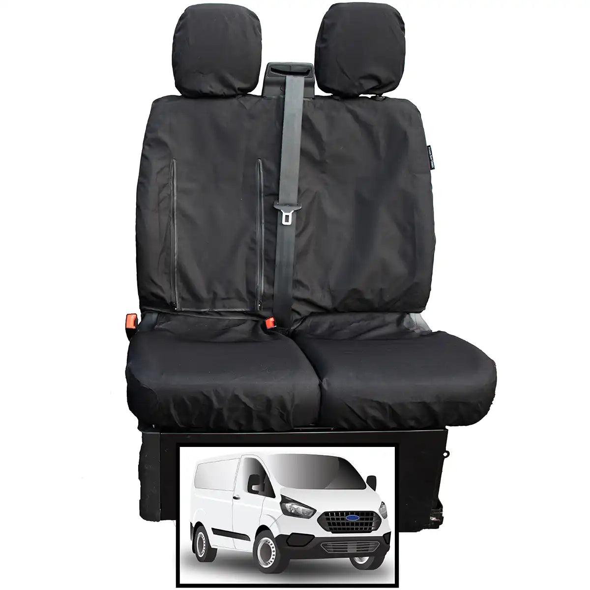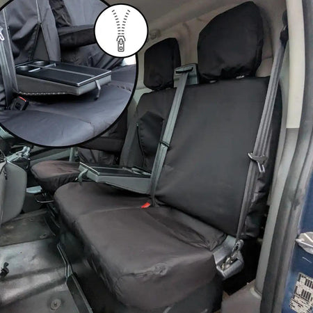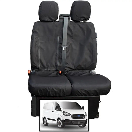 This heavy-duty and comfortable, waterproof seat cover is designed specifically to fit the Ford Transit Custom van's driver and double passenger seat.
