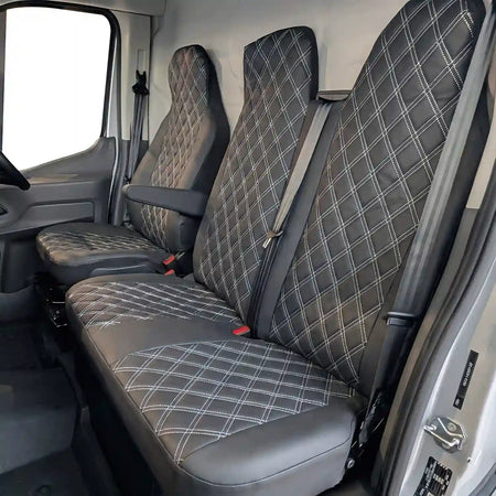 Universal Leatherette Van Seat Covers – Diamond Stitch PVC (Driver + Double Passenger Bench)