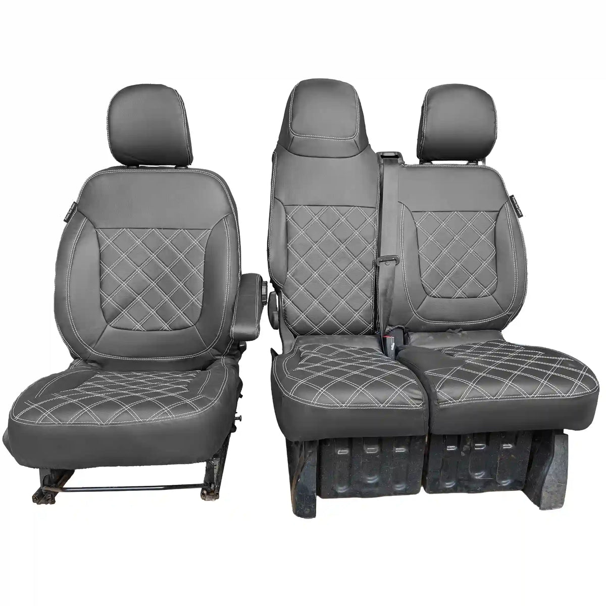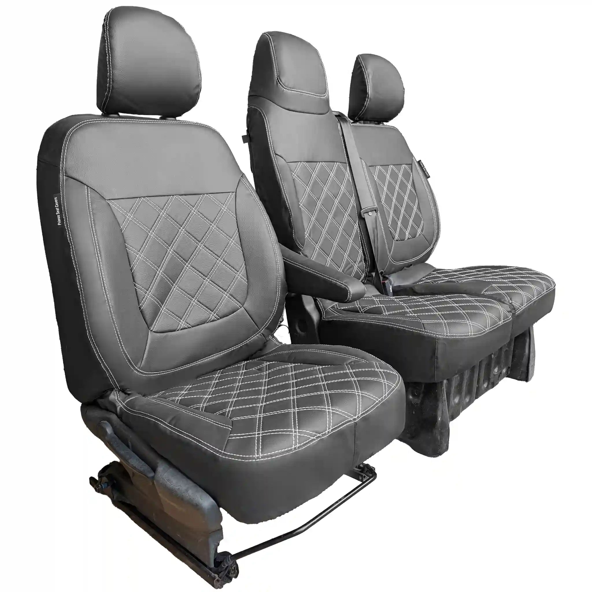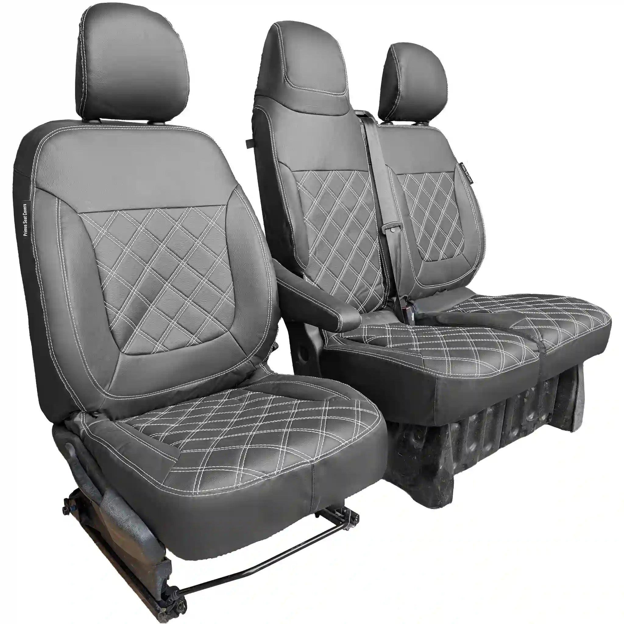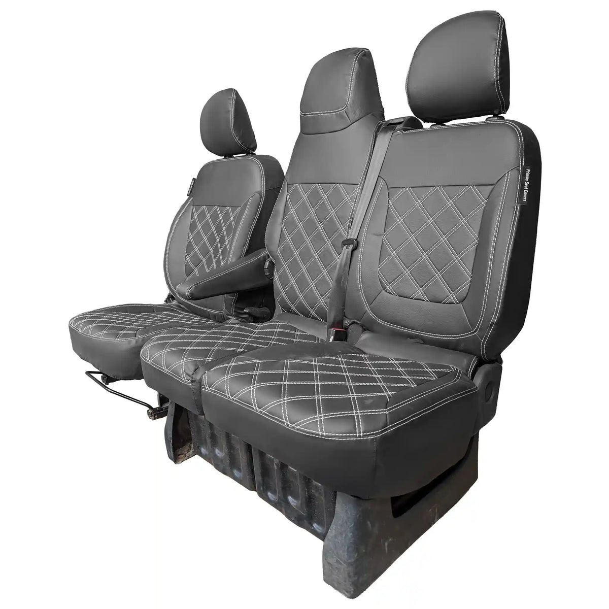 Renault Trafic Seat Covers (2014 Onwards) – Leatherette Diamond Stitch – Driver & Double Passenger with Fold Down Tray
